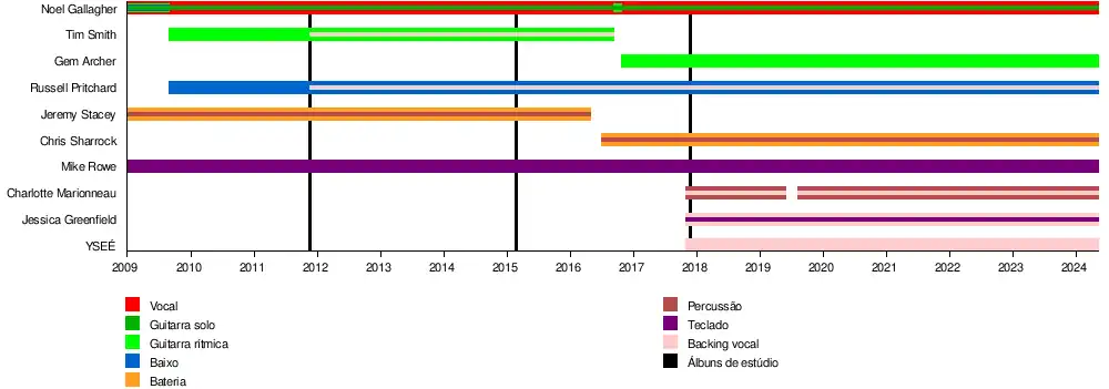 - Noel Gallagher (2009–presente) – vocal · guitarra solo e rítmica
