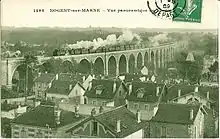 O viaduto de Nogent-sur-Marne serve a linha Paris-Mulhouse, e em particular o trem urbano Paris Gare de l'Est a Tournan-en-Brie (tornada a linha E do RER em 1999), construído pelos Auvérnios e pelos Belgas foi destruída pela primeira vez em 15 de setembro de 1870. Foram os Italianos que o reconstruíram. Será redinamitado pelos Alemães em 1944, e os arcos destruídos substituídos por arcos de concreto armado, em 1945[10].