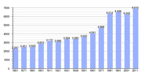 | Variação demográfica do município entre 1861 e 2011[3] |