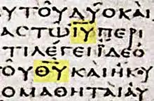 - Como nos versículos do Apocalipse no 18, onde se lê Ἰησοῦς Χριστός ("Jesus Christ") como ΙΗ ΧΡ.