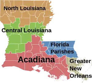 A porção noroeste é culturalmente e economicamente ligada ao Nordeste do Texas e ao Sudoeste do Arkansas. Combinadas, as regiões formam a região conhecida como Ark-La-Tex. Outra região formada por partes de Louisiana, Sudeste do Arkansas e Noroeste do Mississippi formam o Ark-La-Miss.