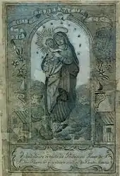 No rodapé da estampa está a frase: “Verdadeiro retrato da Prodigiosa Imagem de Nossa Senhora das Barracas, que se venera na Igreja do Beato Antônio”, indica que a gravura é uma cópia fiel da imagem original que é venerada na igreja do santo, natural de Lisboa, Santo Antônio de Pádua.[16]