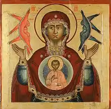 O termo Virgem do Sinal ou Nossa Senhora do Sinal é uma referência à profecia de Isaías 7,14 : “Portanto o Senhor mesmo vos dará um sinal; eis que uma virgem conceberá, dará à luz um filho e chamará seu nome Emanuel". Essa imagem é frequentemente colocada na abside do santuário de uma igreja ortodoxa acima da Mesa Sagrada (altar).[2]