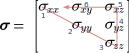 Como outro exemplo, o tensor tensão (em notação matricial) é expresso como