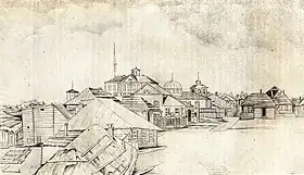Novo-Arkhangelsk (Desenho de Pavel Nikolaevich Mikhailov).