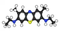 | Derivados da fenotiazina relacionados | Azul de metileno (cloreto de 3,7-bis(dimetilamino)-fenotiazin-5-io) Azul de toluidina (cloreto de (7-amino-8-metil-fenotiazin-3-ilideno)-dimetil-amônio) |