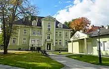 - Complexo de casas de Karl Janson, rua Bankowa 3, depois de 1920: uma mansão, um jardim, uma fonte e escadas, uma cerca