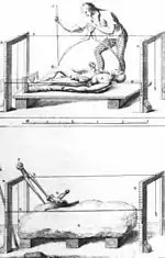 A anatomia artística correu em paralelo desde o Renascimento à científica — na Grécia Antiga não há dados que avaliem um estudo científico do corpo, mas simplesmente uma observação realista do natural —, baseada em dissecções do corpo humano; tanto artistas como médicos e cientistas estudaram os ossos, músculos e demais partes do corpo, donde extraíram os conhecimentos que aplicaram às obras de arte. Cabe destacar-se nesse sentido os estudos efetuados por Andreas Vesalius, que em 1543 publicou De humani corporis fabrica, um estudo anatômico do corpo baseado em dissecções, nas que, junto ao texto, destacavam múltiplas lâminas ilustrativas do corpo humano — obra de Jan van Calcar —, que serviram de base aos artistas para as suas imagens, baseadas cada vez mais no realismo objetivo. As lâminas deste livro estavam concebidas com critérios artísticos, aparecendo esqueletos e figuras esfoladas em posses artísticas ou gesticulando, quase teatrais.[51] Contudo, desde o século XVIII, e em paralelo à preservação dos estudos artísticos pelas academias nacionais, encarregadas da formação dos artistas, a arte e a ciência foram divergindo, especializando-se cada vez mais e centrando-se nas suas respectivas funções. A anatomia acadêmica baseou-se em manuais cujas ilustrações, se bem que apresentavam esqueletos e figuras esfoladas, eram representadas de jeito artístico, geralmente inspiradas na escultura antiga. Assim, foi frequente em todas as academias a presença de manequins articulados[nota 5] e de estátuas de homens esfolados, a mais famosa das quais foi concebida por Jean-Antoine Houdon.[52]