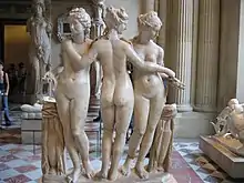 Com um claro precedente na arte etrusca, a arte romana recebeu uma grande influência da arte grega. Graças à expansão do Império Romano, a arte clássica greco-romana alcançou quase todos os rincões da Europa, norte da África e Próximo Oriente, sentando a base evolutiva da futura arte desenvolvida nestas zonas. A maior parte de estátuas romanas são cópias de obras gregas, ou estão inspiradas nelas, como o Torso do Belvedere (50 a.C.), a Vênus de Médici (século I a.C.) ou o Grupo de Santo Ildefonso (10 a.C.).[69] Mais original foi o seu pintura, da qual nos chegaram numerosas mostras graças sobretudo às escavações em Pompeia e Herculano, onde existem numerosas cenas nas quais abunda o nu, com clara tendência ao erotismo, mostrado sem rodeios, como uma faceta mais da vida.[70]