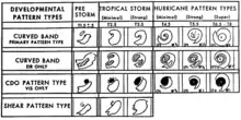 Ciclones tropicais com ventos máximos sustentados entre 65 mph (105 km/h) e 100 mph (160 km/h) podem ter seu centro de circulação obscurecido por nebulosidade em imagens de satélite visível e infravermelho, o que torna o diagnóstico de sua intensidade um desafio.[13] Os ventos em ciclones tropicais também podem ser estimados rastreando recursos dentro do CDO usando imagens de satélite geoestacionárias de varredura rápida, cujas fotos são tiradas em minutos, em vez de a cada meia hora.[14]