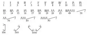 Os Mokshas, conforme a arqueologia da União Soviética tinham um sistema numeral arqueologicamente confirmado, o qual datava da Idade da Pedra.[5] Os numerais eram feitos por traços gravados em madeira, desenhados sobre argila ou em súber. Em alguns locais ficaram preservados até o início do século XX, mantidos por mercadores, apicultores e pessoas idosas dos vilarejos. Tais numerais ainda podem ser encontrados em objetos de pastores de rebanhos, coletores de impostos, apiários e em peças de argila.ttery.[6] [3] [7] [8]