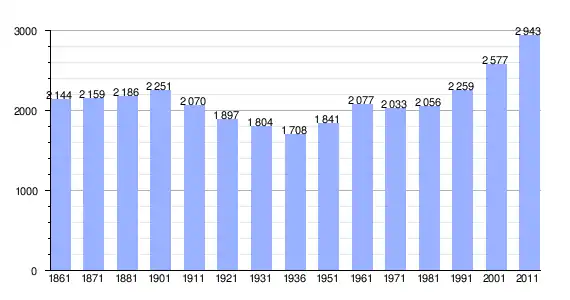 | Variação demográfica do município entre 1861 e 2011[3] |