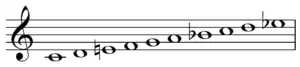 Ele adiciona bemóis à medida que vai mais alto, e sua configuração de altura é semelhante às escalas Dastgāh-e Māhur (persa) e Obikhod (russa).
