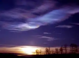Nuvem estratosférica polar na Região Ártica.