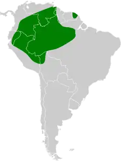 Pode ser encontrada nos seguintes países: Bolívia, Brasil, Colômbia, Equador, Guiana Francesa, Guiana e Peru.[1]