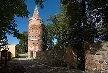 - Torre de observação de pedra na rua Gronowska, construída em 1937 em homenagem a Dietrich Eckart, um dos líderes do NSDAP[13]