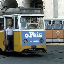 Publicidade a’O País num elétrico de Lisboa, em outubro de 1982.