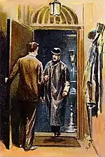 Durante uma tempestade, o inspetor Stanley Hopkins procura o auxílio de Holmes para um caso muito singular: o assassinato de Willoughby Smith, secretário do professor Coram. O jovem havia sido contratado há pouco tempo, com a função de escrever o que fosse pedido por Coram e pesquisar assuntos para os livros do professor. Mas Coram acaba sendo assassinado com uma facada no pescoço, e em sua mão foi encontrado um pince-nez de ouro.[1]
