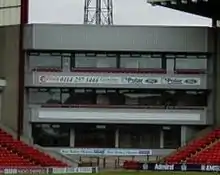 As três arquibancadas foram reconstruídas na década de 1990.[4] De um lado está a Arquibancada Leste, construída ao longo de toda a lateral do campo. Inaugurado em março de 1993, este setor é coberto e tem capacidade para 7.500 espectadores. A arquibancada no lado oposto, é a chamada West Stand, parte da qual remonta a 1904, quando da sua construção. No chamado CK Beckett Stand, um setor totalmente com cadeiras, coberto e utilizado pelos torcedores da casa, tem capacidade para 4.500 pessoas e foi re-inaugurado em 1995. A outra extremidade, o Setor Norte, foi anteriormente uma arquibancada aberta mas agora é coberta, com capacidade para 6.000 torcedores. A quantidade de cadeiras oferecidas aos torcedores visitantes varia de acordo com a demanda.[4]