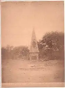 O obelisco foi descrito, no mesmo documento, como um pilar em forma de pirâmide triangular, assentado sobre uma base de pedras brutas. Foram instaladas placas em homenagem ao imperador e aos participantes da expedição, com as seguintes inscrições: