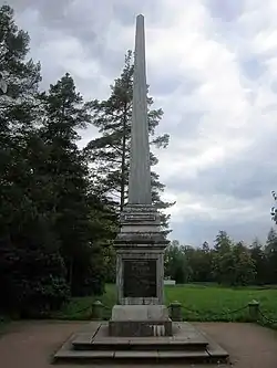 A inscrição no pedestal diz: "Em recordação da vitória no rio Kagul na Moldávia, 21 de julho de 1770, sob comando do conde Pyotr Rumyantsev".