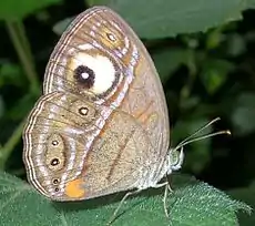 Noutras espécies de borboletas, como a Bicyclus anynana, os ocelos também podem servir como mecanismo de camuflagem, ao imitarem o padrão de folhas caídas.[9]