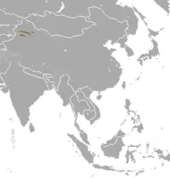A espécie é endêmica de Xinjiang, no noroeste da China, onde é encontrada em altitudes de 2 800 a 4 100 metros nas cordilheiras de Tian Shan.[2] A distribuição é fragmentada e um censo recente registrou o desaparecimento do animal nas montanhas Jilimalale e Hutubi South.[4] Desde a sua descoberta, foram raras as vezes em que este mamífero foi visto. Em 2014, durante uma expedição à cordilheira Tian Shan, o mesmo cientista que descobriu a espécie conseguiu fotografar um exemplar.[5]