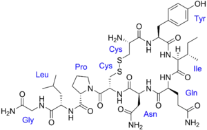 Os peptídeos da neurohipófise são classificados em duas famílias: a da vasopressina e a da ocitocina. A estrutura de ambas é muito parecida, diferindo-se apenas nos aminoácidos da terceira e oitava posição. Na posição 8, a família da vasopressina contém um aminoácido básico (Lys, Arg); já a família da ocitocina contém um aminoácido neutro. Na posição 3, encontra-se na ocitocina a isoleucina, que é essencial para estimular os receptores desse hormônio; enquanto na vasopressina o terceiro aminoácido é a fenilalanina.[3]
