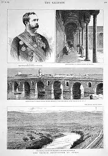 ![]() Chasseurs francês em posto em Tunis, 1881. ![]() Uniformes da Tunísia em 1881. | |||