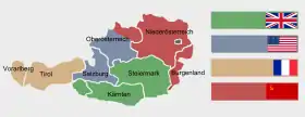 A ocupação soviética da Áustria ocorreu entre 1945 a 1955.[37] No final da guerra, a Áustria e Viena foram divididos em quatro zonas de ocupação, seguindo os termos da Conferência de Potsdam. O país foi reservado para a exploração econômica pesada. A União Soviética expropriou mais de 450 empresas, anteriormente de propriedade alemã.