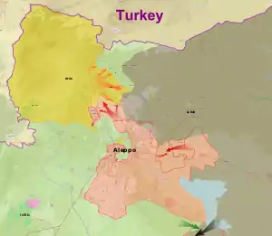 Em 4 de fevereiro, as Forças Democráticas Sírias, lideradas pelas Unidades de Proteção Popular (YPG), também lançaram uma ofensiva contra os rebeldes no norte de Alepo e assumiram o controlo de Ziyara e Khreiybeh, a norte de Nubl.[13] Ao mesmo tempo, as tropas do governo capturaram as cidades de Mayer e Kafr Naya.[14][15]