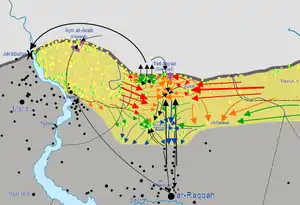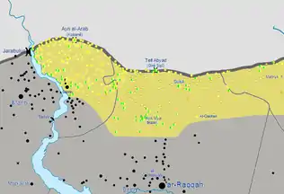 - Karybdis (16 de junho de 2015). «Tal Abyad / Gire Spi map. After closing the Shunaynah Pocket, #YPG/#FSA proceed to eliminate half the North Pocket.pic.twitter.com/gDiDfxYlKL». @karybdamoid (em inglês). Consultado em 24 de janeiro de 2018
