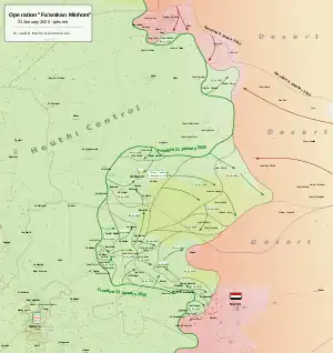 ![]() Mapa da ofensiva Controle do governo pró-Houthi Controle do governo pró-Hadi | |||