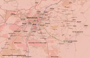 ![]() Situação da província de Zona Rural de Damasco em junho de 2015. Áreas sob controle do governo