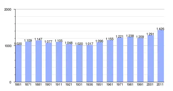 | Variação demográfica do município entre 1861 e 2011[3] |