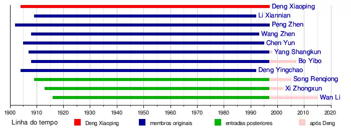 Os membros do grupo nunca foram formalizados. No entanto, com Deng Xiaoping como líder absoluto, os membros geralmente são considerados os seguintes:[3]