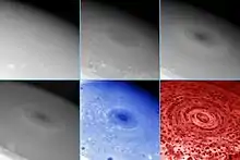 Em novembro de 2006 a NASA relatou que a espaçonave Cassini observou uma tempestade 'semelhante a um furacão', fixada sobre o pólo sul de Saturno, e que possuía uma clara e definida parede do olho. Essa observação é particularmente notável porque as nuvens da parede do olho não haviam sido observadas em nenhum planeta que não a Terra (incluindo um fracasso na observação de uma parede do olho na Grande Mancha Vermelha de Júpiter pela espaçonave Galileu).[29]