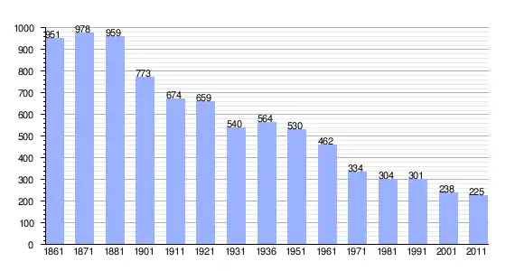 | Variação demográfica do município entre 1861 e 2011[3] |
