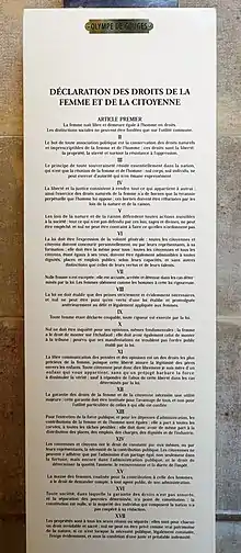 | Obras destacadas | Declaração dos Direitos da Mulher e da Cidadã |