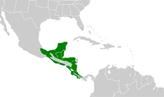 Pode ser encontrada nos seguintes países: Belize, Colômbia, Costa Rica, El Salvador, Guatemala, Honduras, México, Nicarágua e Panamá.[1]