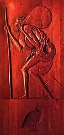 Onile - escultura de Carybé em madeira, em exposição no Museu Afro-Brasileiro, Salvador, Bahia, Brasil