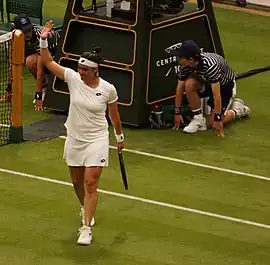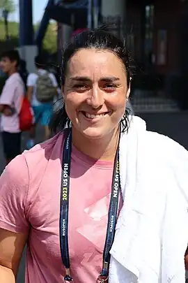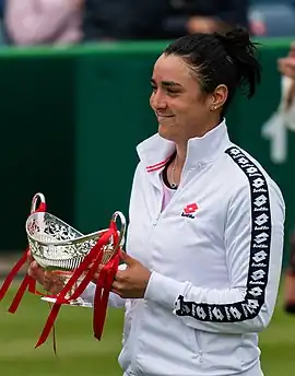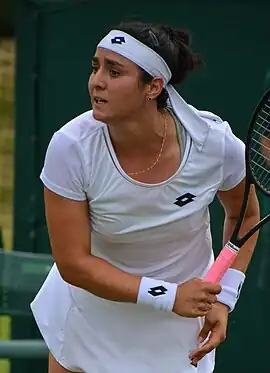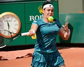 Ons Jabeur (em árabe: أُنْس جابر Uns Jābir; Ksar Hellal, 28 de agosto de 1994) é uma tenista profissional tunisiana. Seu melhor ranking é de N. 2 em simples pela WTA, atingido em junho de 2022.[5] Jabeur se tornou a primeira mulher árabe a chegar às quartas e semifinal de um torneio de Grand Slam, ela chegou nas quartas de final do Aberto da Austrália de 2020 e na final de Wimbledon de 2022 e 2023.[6][7] Ela também é a jogadora árabe com melhor classificação na história da WTA. Jabeur ganhou 11 títulos de simples e um título de duplas no Circuito Feminino da ITF. Ela alcançou sua única final do WTA em 2018 na Copa Kremlin de nível Premier na Rússia, perdendo para a russa Daria Kasatkina.