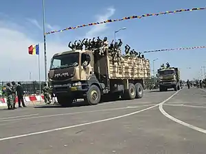 ![]() Caminhão militar chadiano Renault Kerax retorna a N'Djamena após a operação, 13 de abril de 2020. | |||