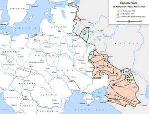 ![]() Avanço soviético durante as Operações Urano, Marte e Saturn. | |||