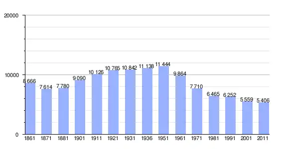 | Variação demográfica do município entre 1861 e 2011[3] |
