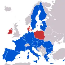 Em 2008, dois estados têm derrogações formais do Acordo de Schengen e da moeda comum, enquanto a Dinamarca tem derrogações adicionais além das respeitantes ao euro. A Suécia está numa situação especial que é uma derrogação de facto.