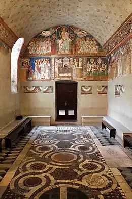Nas paredes laterais está um ciclo de afrescos composto por onze cenas pintado em 1248. Mariano Armellini conta que uma inscrição indicava a data: "A.D. MCCXLVIII hoc opus divitia fieri fecit. Este ciclo é conhecido como "Actus Silvestri" e é uma referência à lendária vida do imperador romano Constantino I:[2]: