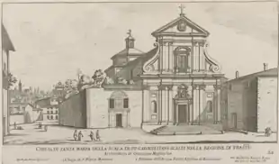 No final do século XVI, uma confraria foi fundada em Roma sob os auspícios de Santa Teresa de Ávila e São Carlos Borromeo[1] e ela inicialmente se encontrava numa sala do mosteiro anexo de Santa Maria. Em 1612, a confraria conseguiu construir seu próprio oratório[2]. Duas colunas jônicas sustentavam uma cornija na fachada e sobre ela estava um afresco coroado por frontão curvo partido. O Mapa de Nolli (1748) revela que o interior era retangular com uma minúscula abside onde ficava o coro.