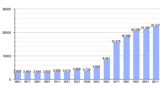 | Variação demográfica do município entre 1861 e 2011[3] |