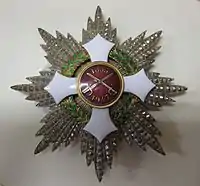 - A Estrela é de prata, com oito pontas com o emblema, sem ligações, ao centro. Esta é usada pela classe de Cavaleiro da Grã-Cruz e Grande Oficial.
